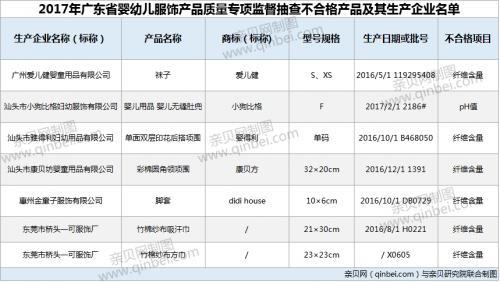 表三2017年广东省婴幼儿服饰产品质量专项监督抽查不合格产品及其生产企业名单,如下: