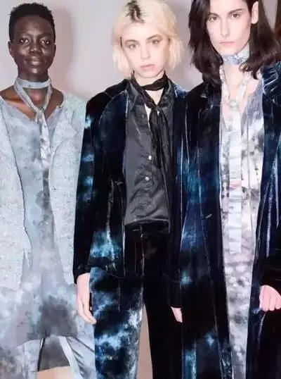 与传统印染工业大批量生产不同,特种染色工艺专指针对单款、衣片染色或批量成衣染色。常见的特种染色工艺包括现代扎染如夹染、吊染、冷染(又名脏染)、注染、拔染和蜡染等,具有写意的艺术感、自然的手工感及自由的随机感,应用非常广泛,从中式传统民间服饰到欧美休闲类快销品牌服装,从街头潮牌嬉皮风到明星高定礼服,特种染色工艺一直被视为艺术化时装的重要表现。