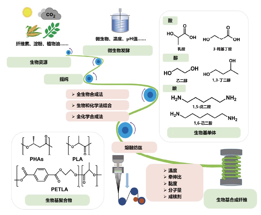 图 1 生物基合成纤维的制备路线